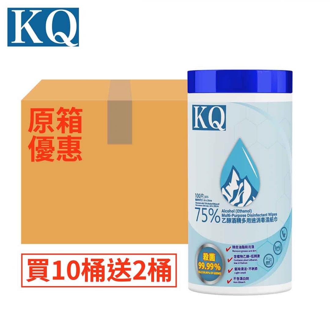 KQ [家用裝]75%乙醇酒精多用途消毒濕紙巾100片裝 x 12包 ( 原箱)